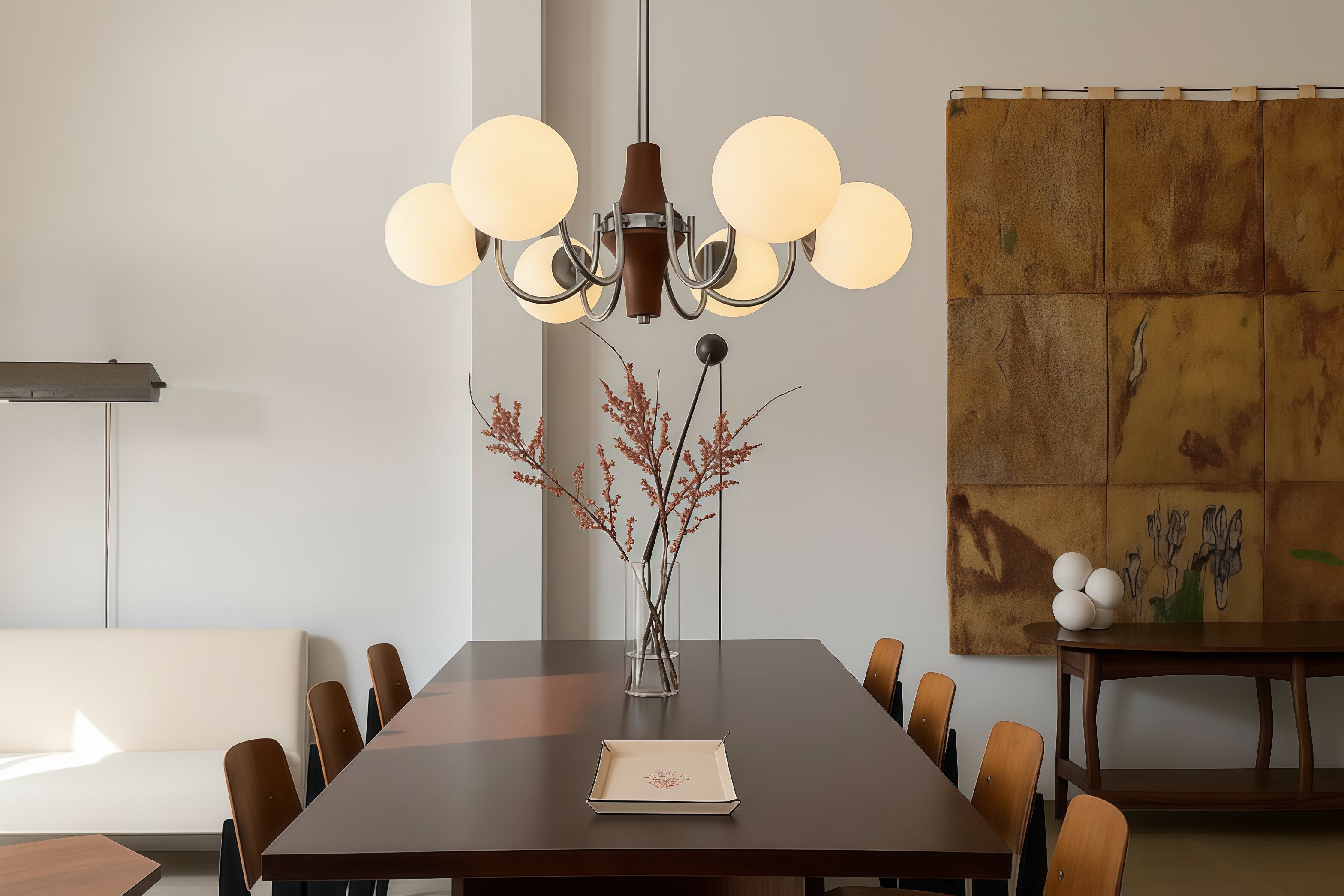 Ce lustre en métal au style moderniste allie à la perfection design rétro et sophistication...
