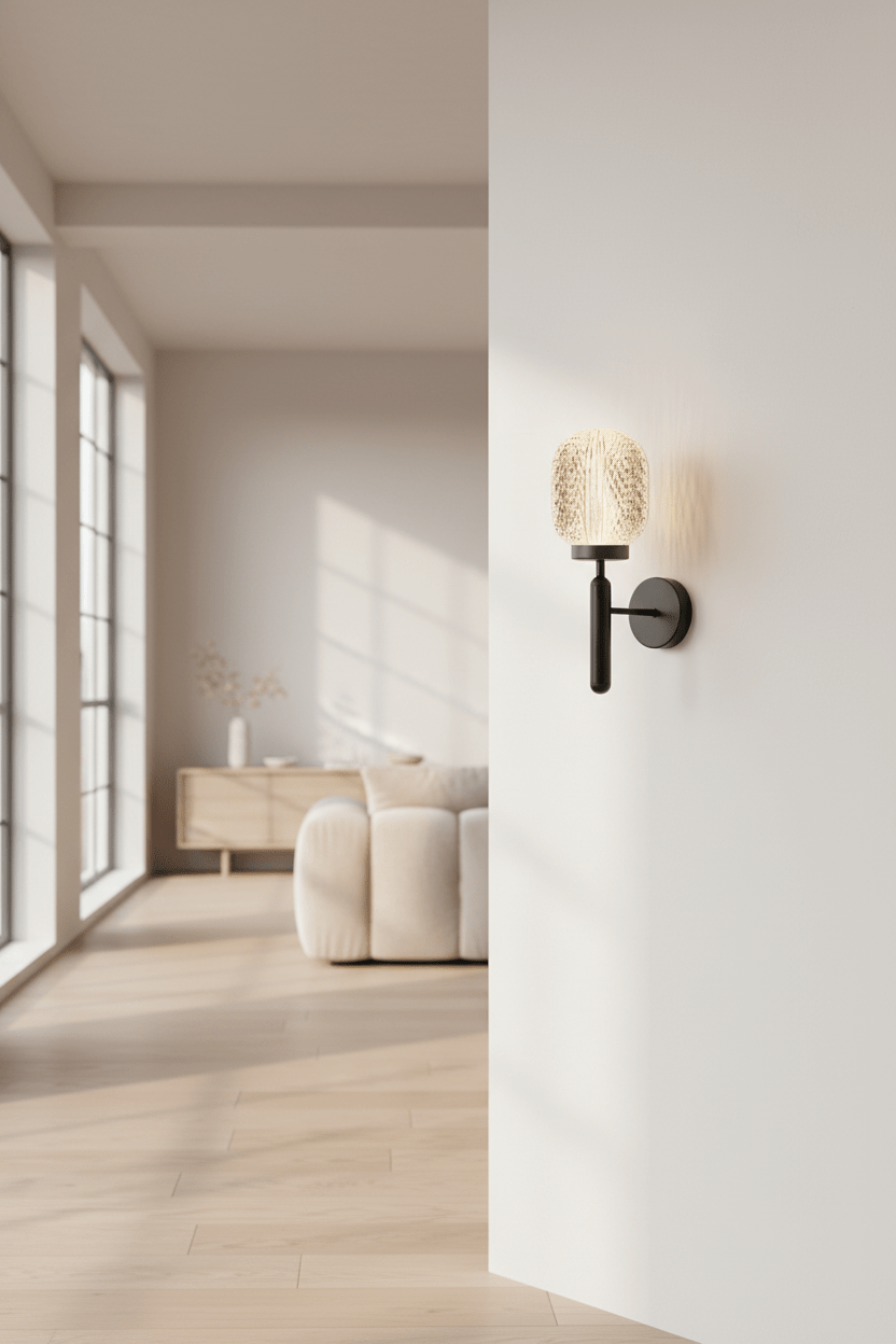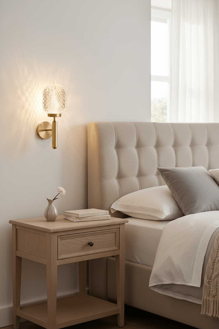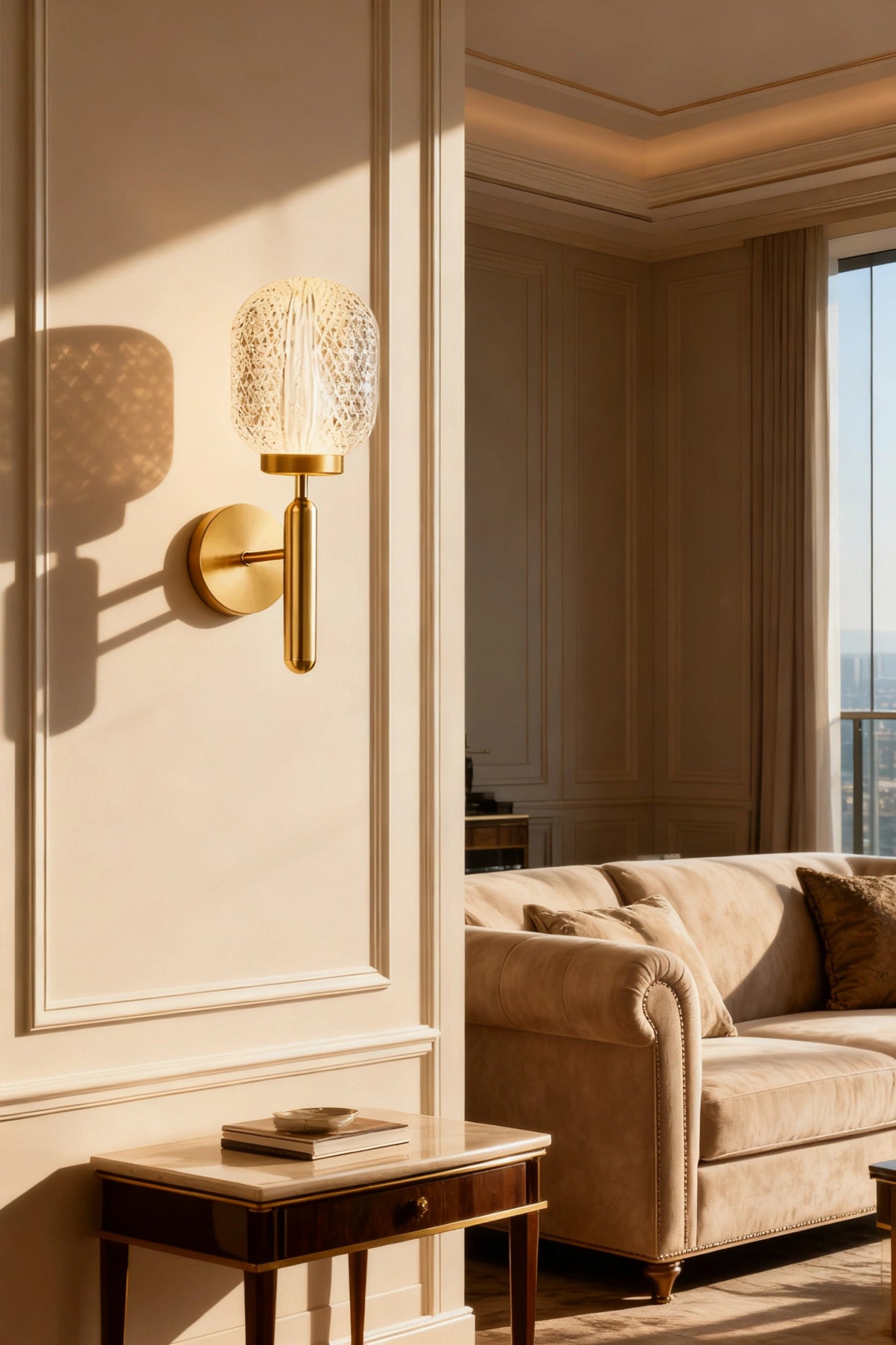 When the light shines, each facet refracts brilliant light like a diamond, weaving a dynamic and sophisticated rhythm of light and shadow on the wall. The base is made of high-purity copper, hand-polished to present a delicate metallic luster, paired with smooth iron lines to outline a clean yet soft geometric silhouette.