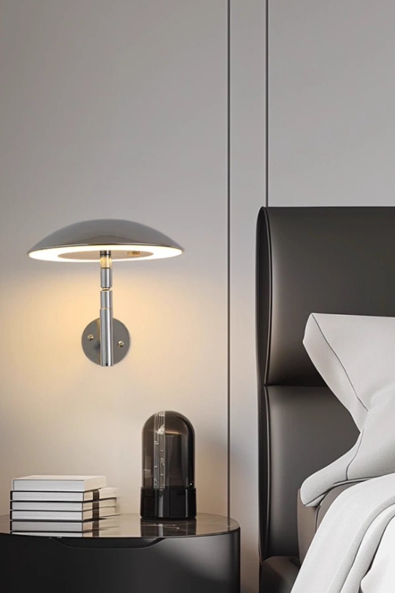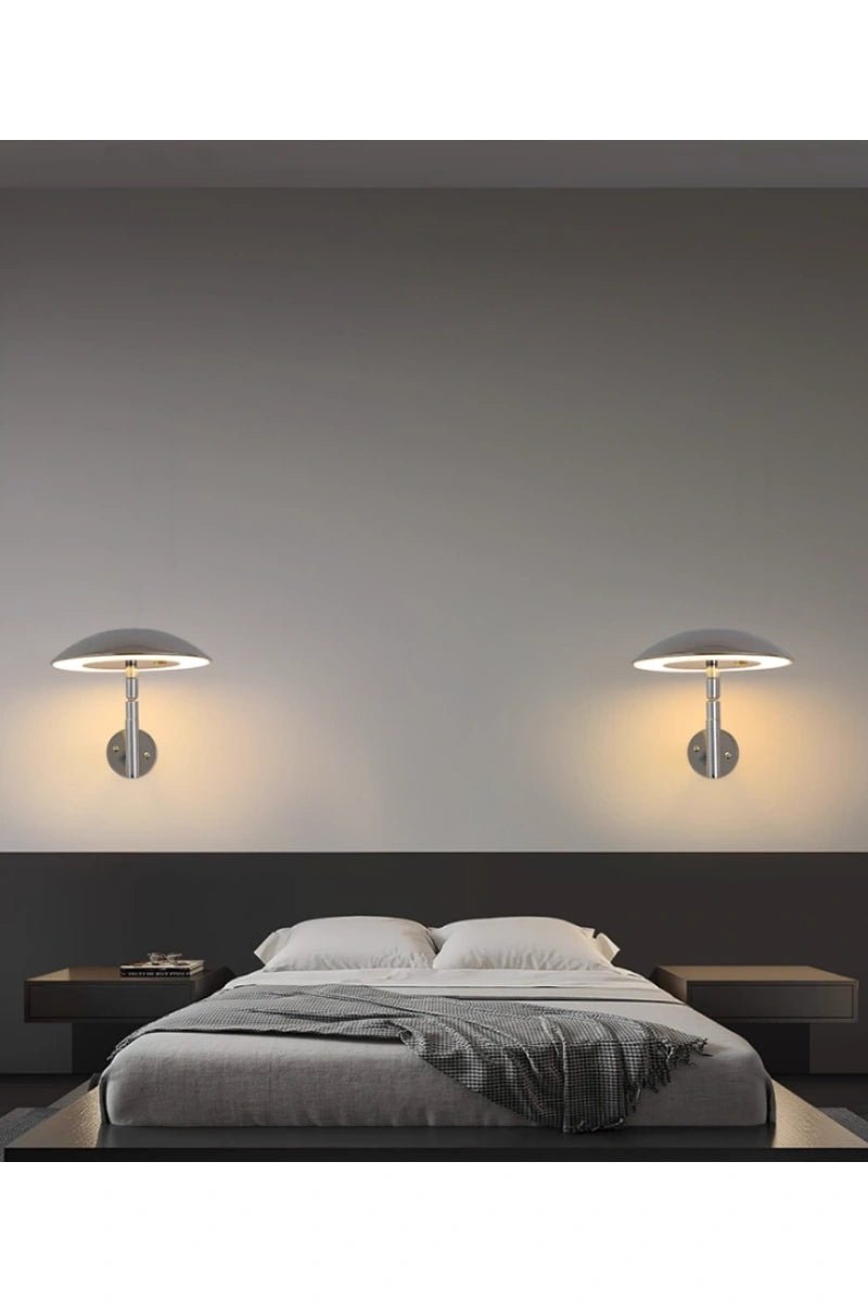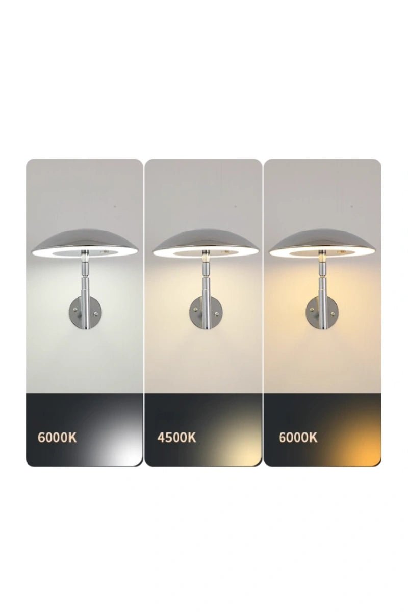 This modern minimalist wall lamp combines ambiance and health benefits, featuring blue light protection, anti-glare, adjustable angle, wireless charging, and three-color dimming.