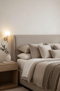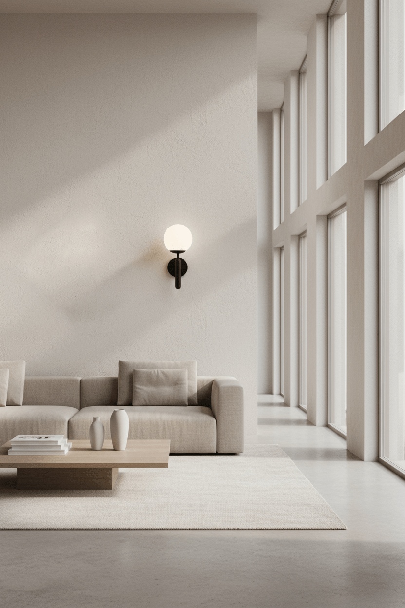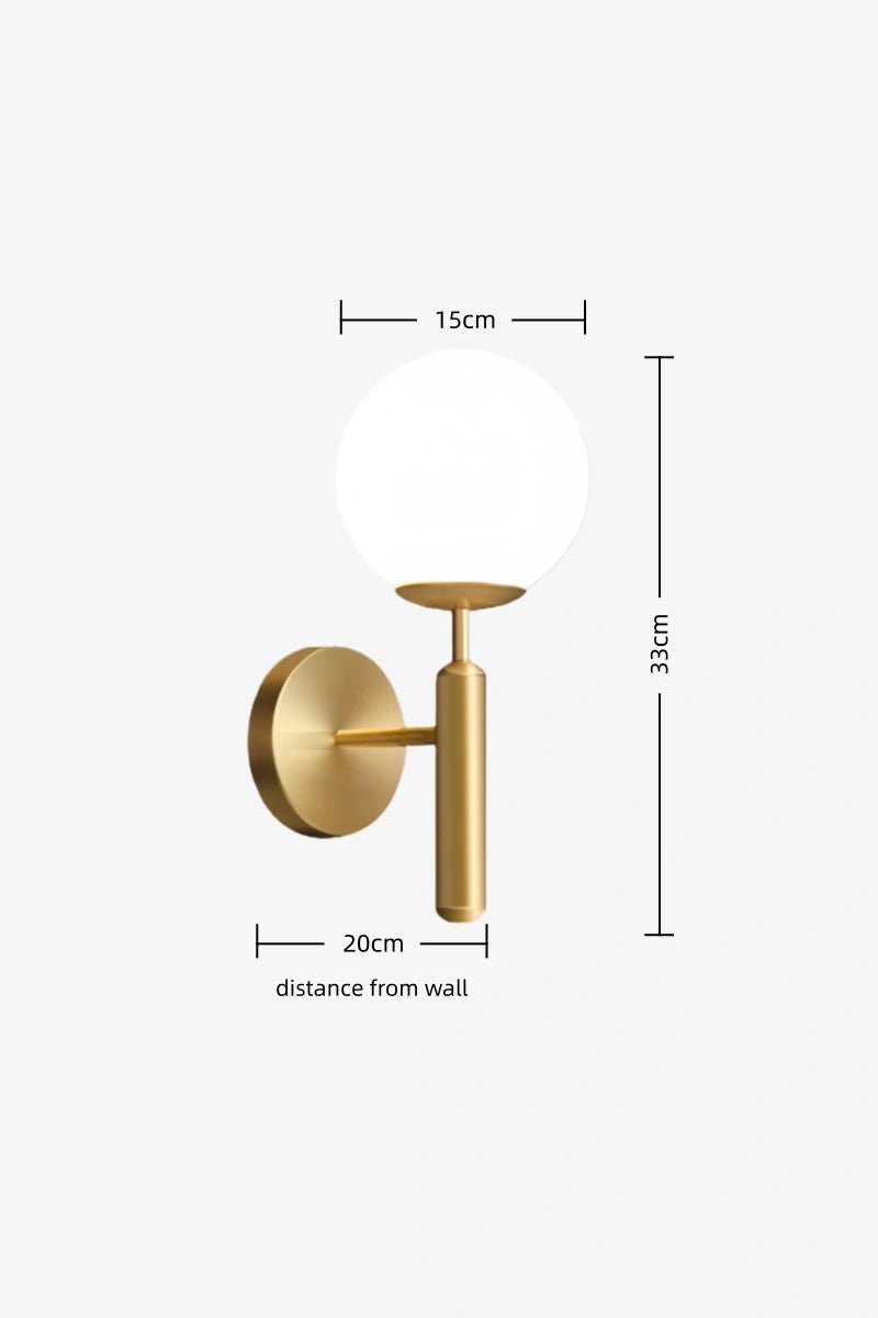 With its pure white hue meeting the warm glow of bronze, this all-copper iron glass sphere wall lamp perfectly blends Nordic minimalism with understated luxury. The lamp body features a high-purity copper base, hand-polished to reveal a delicate metallic luster, paired with flowing lines that outline a clean yet soft geometric silhouette.