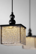 A suspended elegance. This all-copper chandelier, with its minimalist design, infuses the bedroom with a modern Italian flair. More than just lighting, it's an artwork that creates a sophisticated atmosphere.