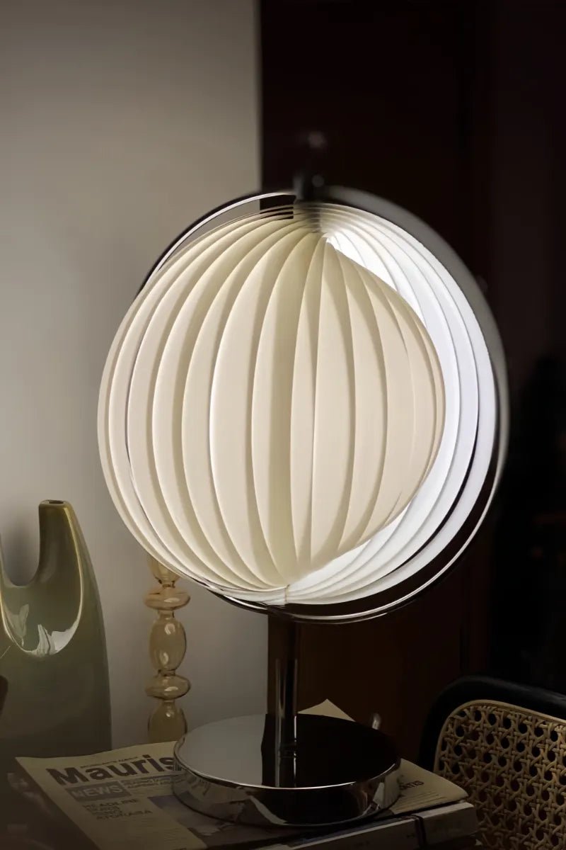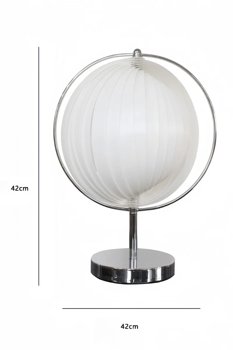 The key design feature is the spherical lampshade, resembling a full moon.* Made of high-temperature resistant PP material, it ensures safety and durability.* The elegantly extended curved metal arm echoes the curves of the moon.