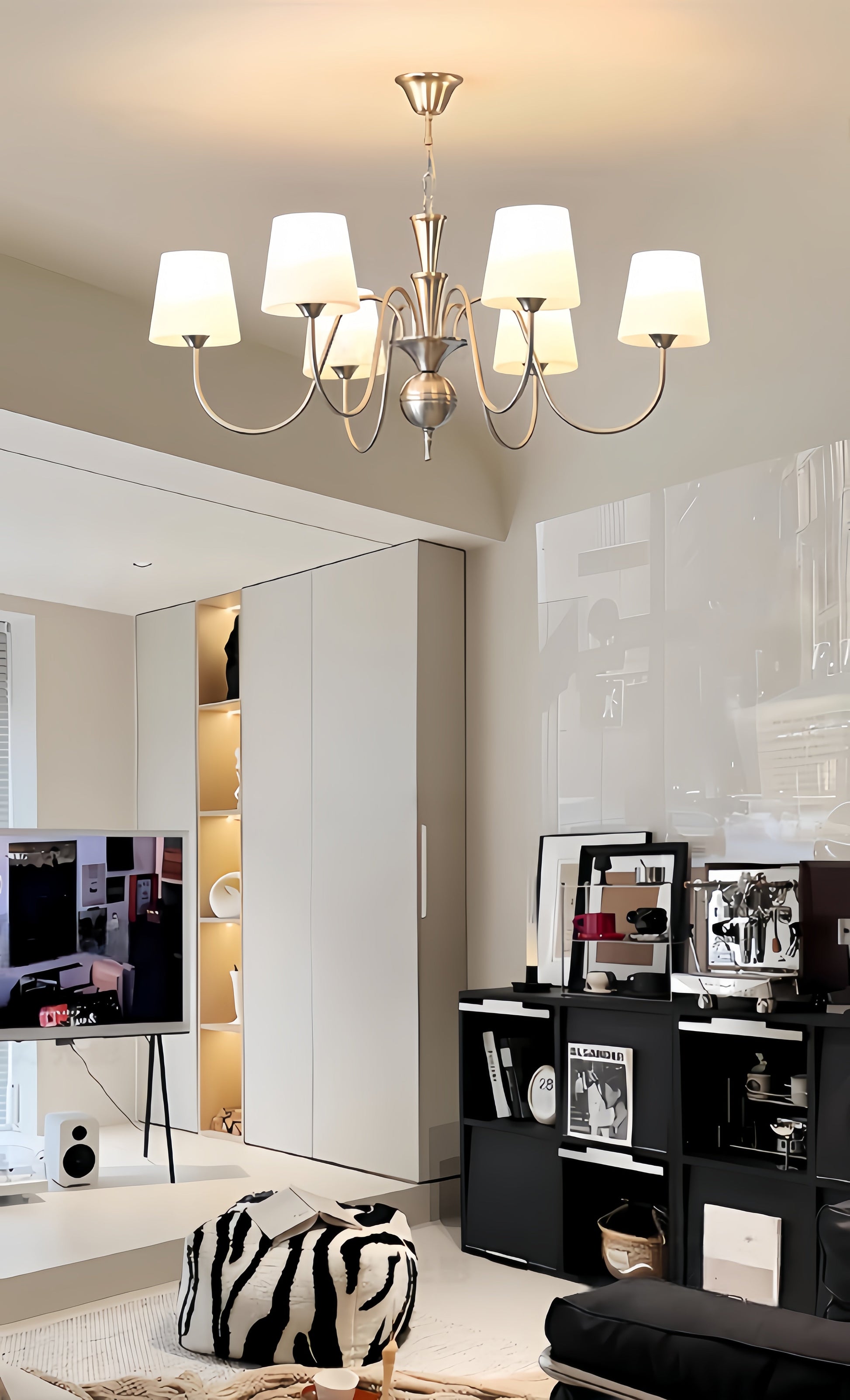 Fashionable dynamism meets classic elegance in a dazzling mid-century style home. It cleverly blends the two, breaking conventional aesthetics and offering a comfortable and beautiful experience. The white jade frosted glass lampshade, with its natural and rustic texture and delicate patterns, subtly infuses the home space with a rich artistic charm.