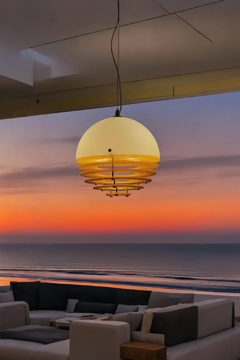 Inspired by the vibrant skies at dusk, the unique concentric circle design outlines the perfect silhouette of a sunset. The moment it's lit, the entire room is enveloped in a warm and romantic atmosphere, healing away the fatigue of your day.