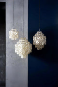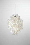 Many regard the Fun collection as one of Verner Panton’s greatest masterpieces in the field of lighting design. Ever since 1964, this pendant lamp has kindled joy and a wealth of stories.FUN 1DM is a medium sized pendant with a three-ring chrome frame.