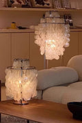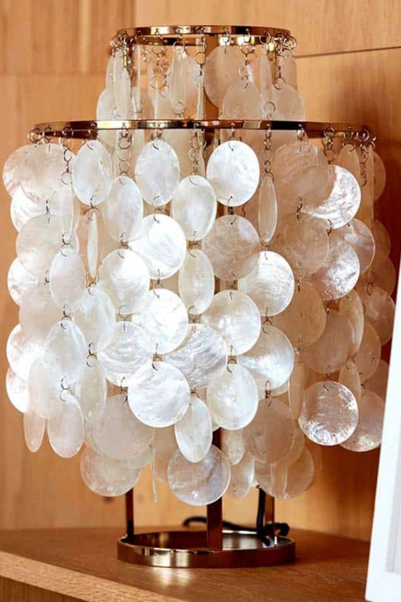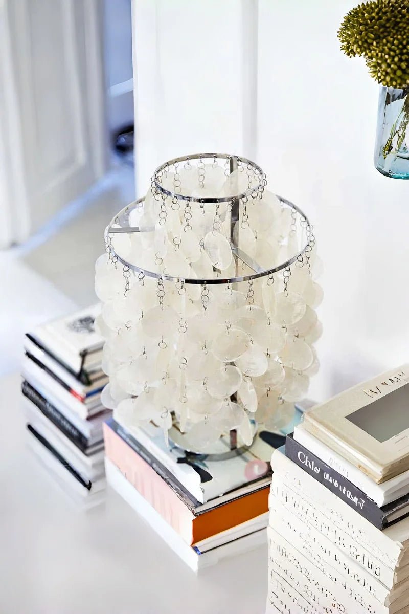 The Fun 2TM encapsulates the magic of the Fun series and reimagines it in the form of a table lamp. With its metal frame supporting hung pearl disc strings, the piece creates a warm aura within its given surroundings.